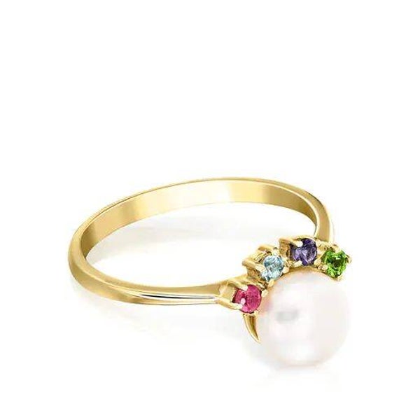 Anillo Real Sisy de Oro con Perla pequeña y Gemas