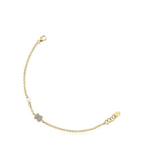Pulsera Nocturne oso de Plata Vermeil, Diamantes y Perla