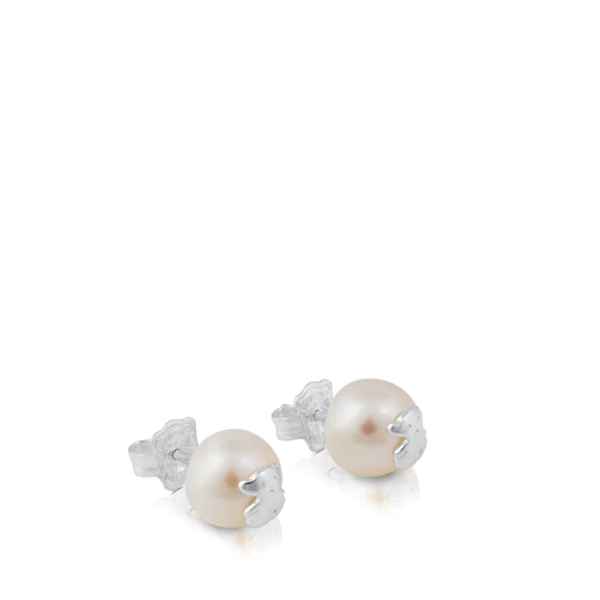 Pendientes TOUS Bear en plata de primera ley y perlas .