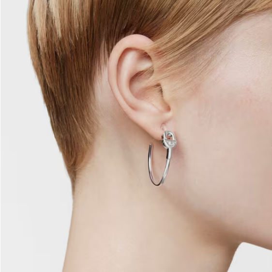 Pendientes de aro largos MANIFESTO en plata de primera ley y detalle central. Tamaño: 29,7mm