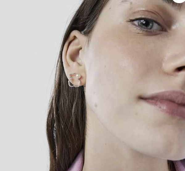 TOUS Pendientes de plata de ley para mujer con motivo de perla y oso, tamaño: 0.6 in, colección Silueta, Plata de ley Perla