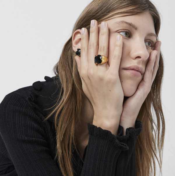 Anillo TOUS de plata vermeil y ónix facetado forma oso Color