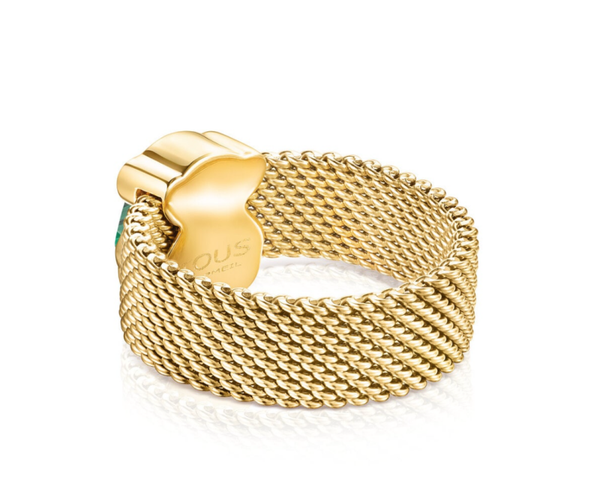 Anillo TOUS dorado y malaquita facetada motivo oso Mesh Color