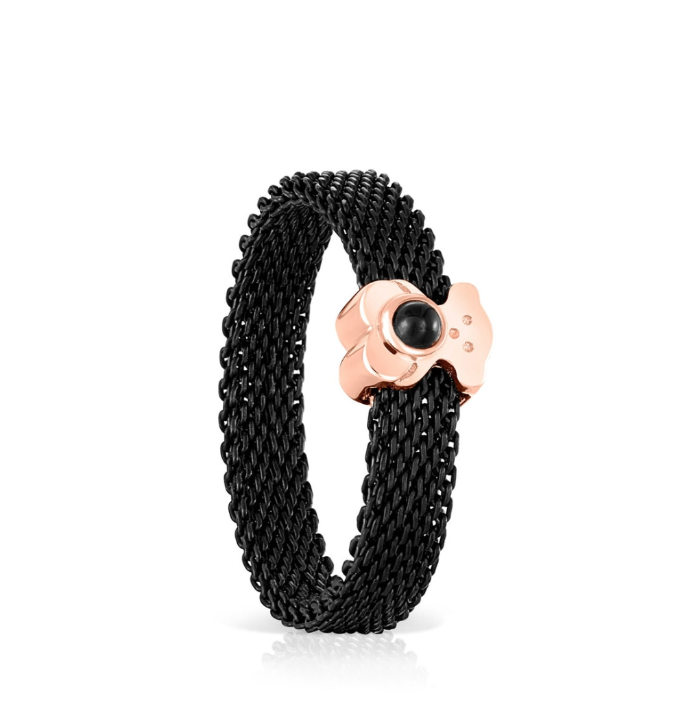 Anillo TOUS estrecho negro y plata vermeil rosa con ónix motivo oso Real Sisy